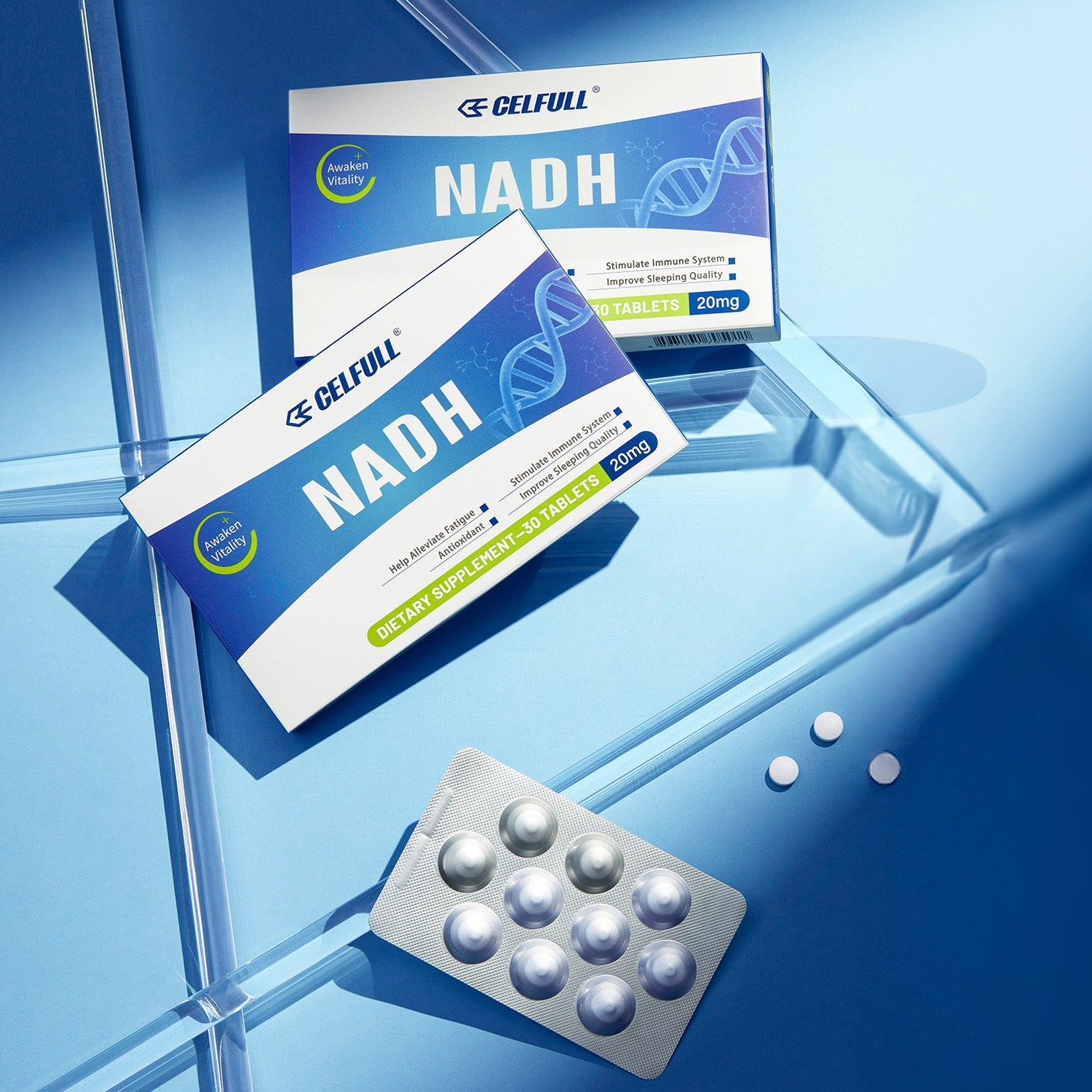 Discover Stability-Assured NADH, we utilizing four layer coating technology (water-resistant layer, oxygen barrier layer, anti gastric acid layer, and enteric coating layer), we aim to solve the stability problem that has long plagued the NADH research community. designed to optimize cellular health and combat aging. It enhances NAD+ absorption for superior support in DNA repair, energy production, and cognitive function, helping you stay energized and resilient.